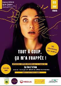 Un moment de théâtre musical positif, plein de force et d’humour malgré le sujet sur les violences conjugales. Alternance de théâtre et de chansons Soul-Pop-Funk hyper dynamiques, il réunit sur scène des musiciens, des comédiens, des chanteurs solistes, ainsi que 40 à 50 choristes qui, ensemble, donnent puissance et intensité à la pièce. Énormément d’énergie, d’espoir, et des infos, avec les artistes des Créateurs d’Émotions Positives qui ont écrit et réalisé ce spectacle. La représentation sera suivie d’une table ronde et d’échanges avec le public.